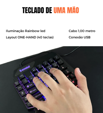 🎮 Kit Gamer Mobilador OTG Evolut – Teclado One-Hand + Mouse Óptico + Mousepad