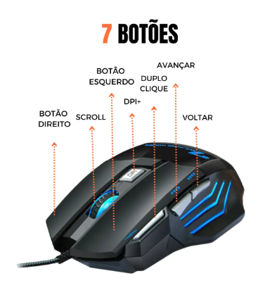 Mouse Gamer RGB de 3200 DPI com 7 botões: movimentos precisos, ótimo para jogos FPS, MOBA e MMO