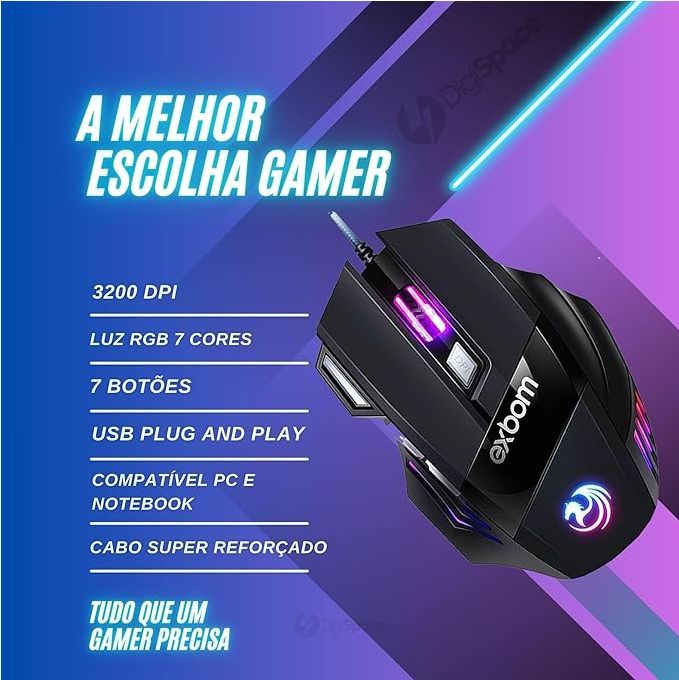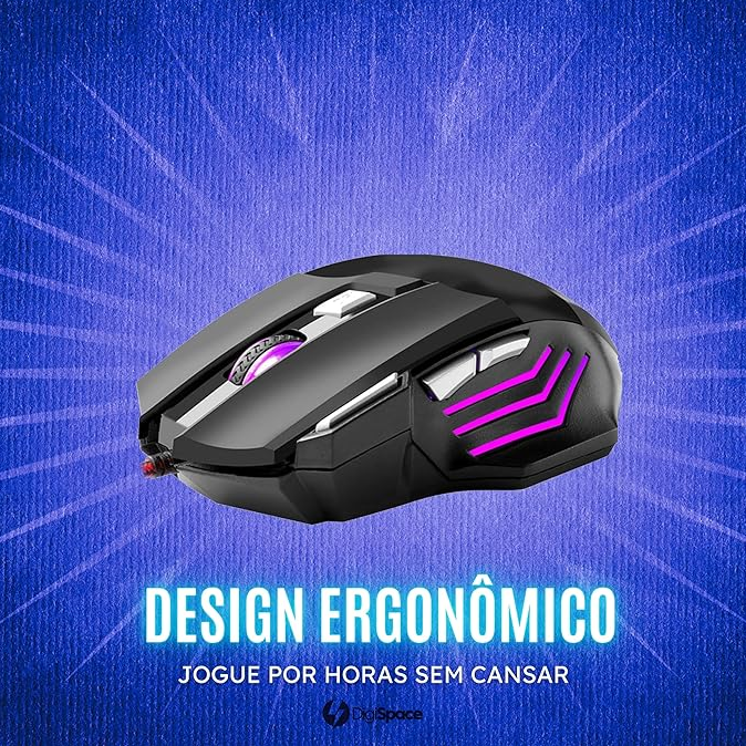 Mouse Gamer 7D 3200 DPI Ajustável 7 Botões Luzes Led RGB Alta Precisão e Velocidade